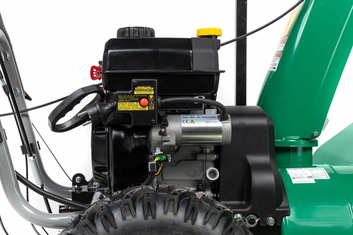 Снегоуборочная машина имеет двигатель мощностью 7 л.с. и объемом 212 куб. см с воздушным охлаждением. Преимущества: