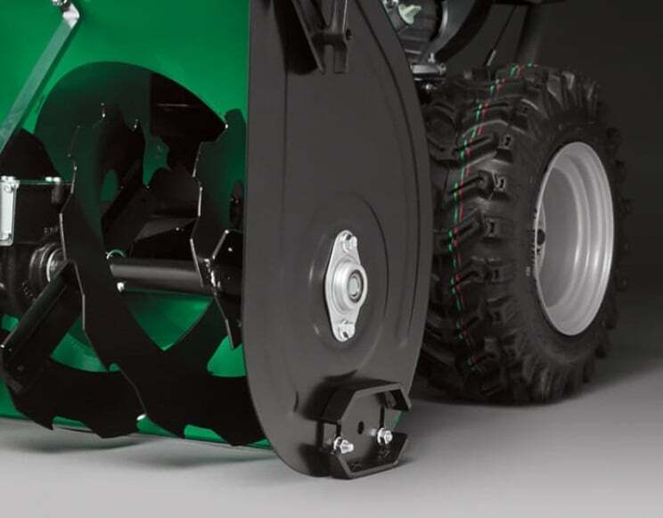 - Снегоуборочная машина имеет прочный металлический корпус и конструкцию, что делает ее более долговечной. Боковые панели закреплены с помощью заклепок, а нижняя часть панелей оснащена двусторонними башмаками. Вместе они усиливают корпус, обеспечивают плавное движение машины и служат защитой, продлевая срок службы.