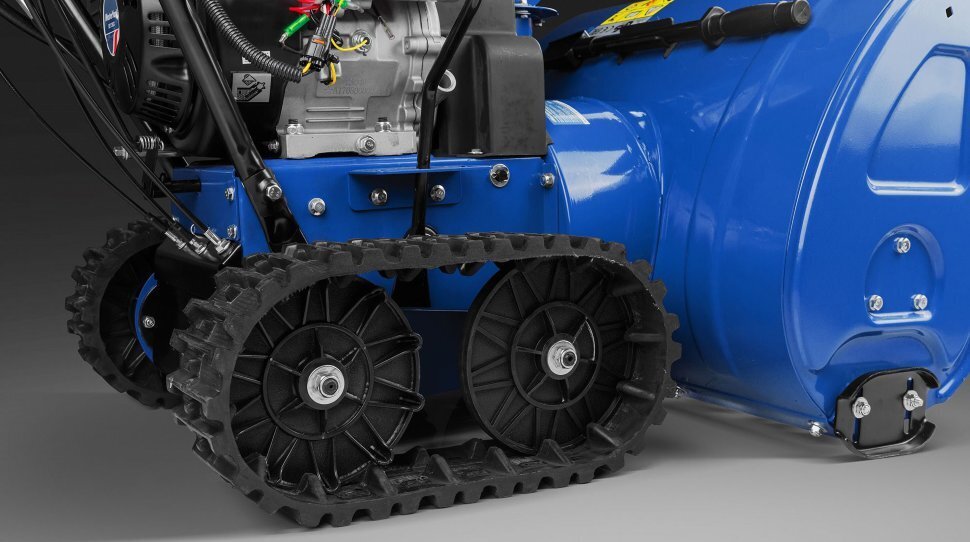 - гусеница у этой модели обеспечивает достаточное сцепление на всех поверхностях, а в совокупности с колесами диаметром 35,5 см позволяют минимальную пробуксовку;