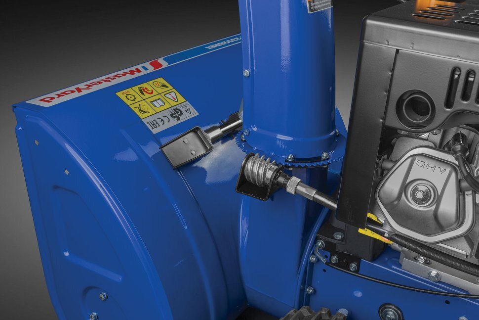 - металлический желоб выброса с системой быстрого разворота меняет направление выброса снега на 190 градусов;