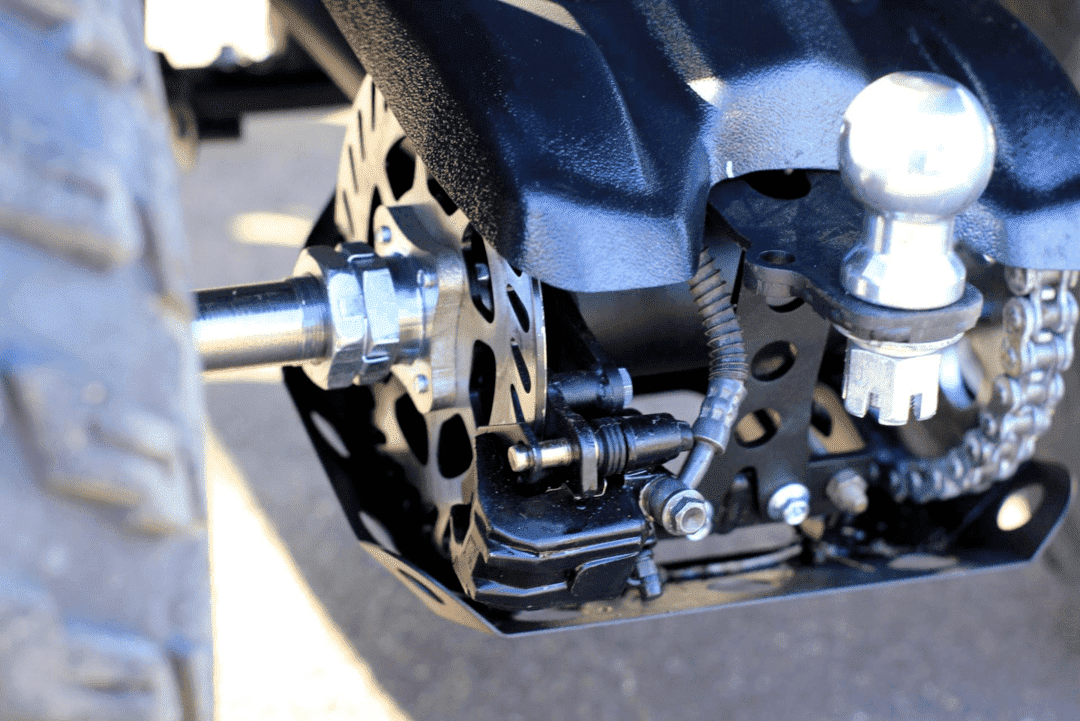 Независимая передняя подвеска позволяет легко маневрировать и держать уверенно курс. В наличие задний ход. На квадроцикле установлены большие внедорожные шины размером 23 дюйма передние и 22 дюйма задние. На задней оси установлены дополнительные защитные кожухи. Рама квадроцикла изготовлена из высокопрочной стали, при этом удалось сделать квадроцикл достаточно легким, его сухой вес составляет 170 кг.