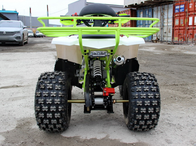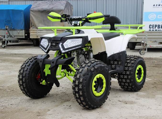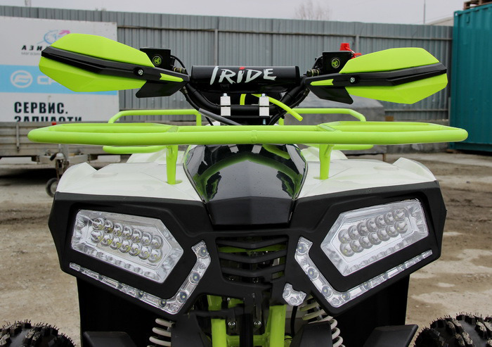 Квадроцикл Iride KOKS 125 кубов выделяется ярким дизайном. Современная оптика, в сочетании с высококачественным пластиком и накладками на колеса в цвет бамперов не оставят равнодушными как детей, так и взрослых. Мотовездеход оборудован гидравлическими передними и задними тормозами, что в совокупности с усиленной рамой и мощным двигателем прекрасно подойдет для подрастающих любителей бездорожья. Автоматическая коробка с центробежным сцепление имеет три передачи: вперед, нейтраль и задний ход.