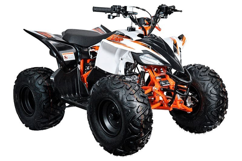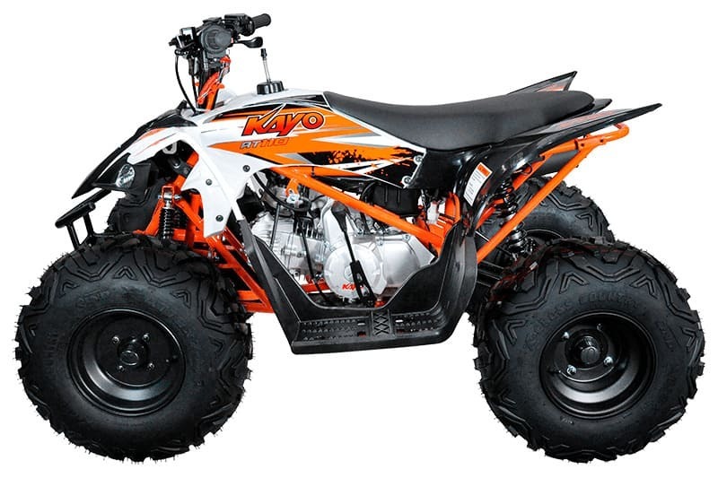 Данная модель квадроцикла на 8-дюймовых колесах предназначена в первую очередь для детей возрастом от шести лет. KAYO AT110 комплектуется надежным 4-тактным двигателем воздушного охлаждения с автоматической коробкой передач, что позволит юному гонщику полностью сосредоточится на технике вождения. Объем двигателя в 107см3 обеспечивает показатели максимальной мощности свыше семи лошадиных сил и дает возможность перевозить до 140 килограммов нагрузки.
