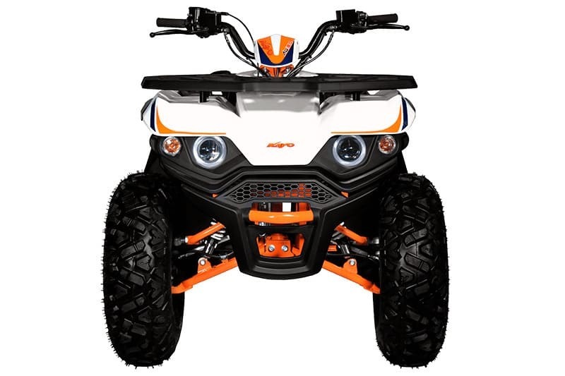 KAYO AU180 также комплектуется производительными дисковыми гидравлическими тормозами, качественным световым оборудованием для использования техники при недостаточном освещении, передней и задней багажными площадками для перевозки небольших грузов, а также фаркопом для прицепа.