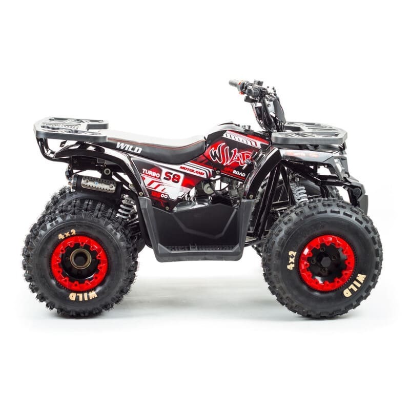 Квадроцикл MOTOLAND 150 WILD - стильный, современный, универсальный квадроцикл, предназначенный для детей и подростков (от 7 лет). Модель характеризуется хорошей управляемостью при любых погодных условиях. Автоматическая коробка передач с реверсом и усиленная рама, повышают прочность конструкции. 8-дюймовые внедорожные колеса с легкостью преодолевают грязь, лужи, песок и кочки. Родительский контроль, защита рук и надежные гидравлические тормоза делают поездку на квадроцикле максимально безопасной. Увеличенная рама спроектирована таким образом, чтобы обеспечить внедорожнику не только прочность и долговечность, но, одновременно, легкость и устойчивость. За счет надежного карбюратора внедорожник заводится даже при -15 °C.