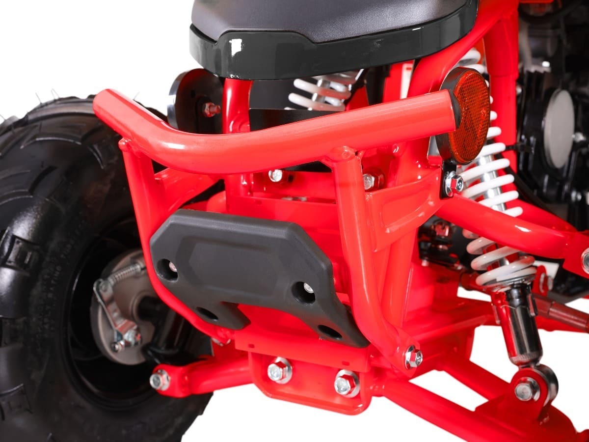 -Мощный двигатель. Благодаря 4-тактному двигателю объёмом 110 см³ и мощностью 9 л. с., Sharmax Cross 130 обеспечивает уверенный старт и плавный разгон до 45 км/ч. Юный райдер сможет легко преодолевать любые дорожные препятствия и наслаждаться скоростью на открытых маршрутах. При этом квадроцикл отличается экономным расходом топлива, что делает его удобным в эксплуатации.