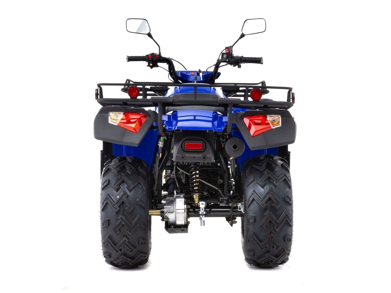 Переключение мощности на задние колёса осуществляется благодаря карданной передаче, при этом дифференциал у этого квадроцикла заблокирован, что позволяет не застрять в непроходимых местах, так как задние колёса будут крутиться вне зависимости от того, на какой поверхности они находятся.