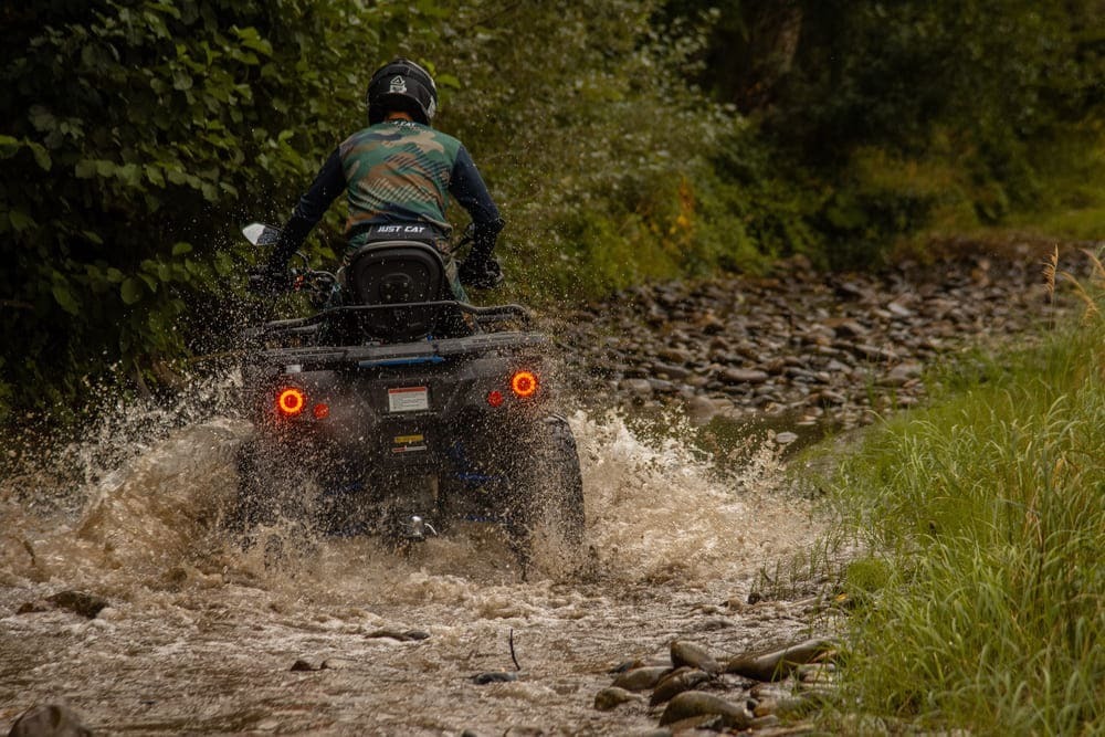 Система полного привода позволяет райдеру выбирать между двумя режимами, 2WD и AWD. В первом случае крутящий момент передаётся исключительно на заднюю ось. Этот способ хорошо показывает себя на твёрдой, не слишком вязкой поверхности. В случае пробуксовки колёс задней оси, имеет смысл подключить переднюю ось. Этот способ позволит выбраться из самой топкой и вязкой грязи.