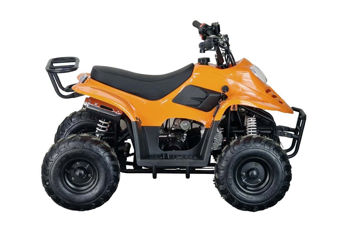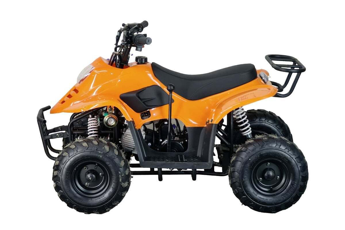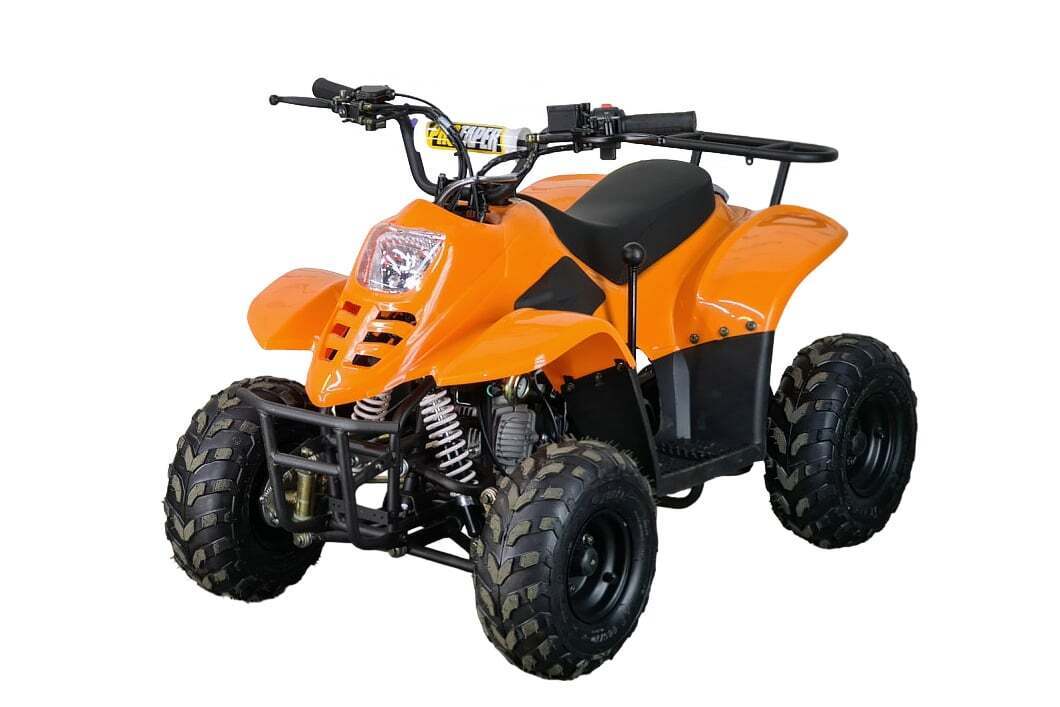 Квадроцикл детский бензиновый Stalker 110 с электростартером и пультом дистанционного включения/отключения. Фары светодиодные. Работает тихо. Рама стальная из металлических труб и профилей. Скорость можно ограничить специальной регулировкой до 7-10 км/ч. Возрастная категория: 3 - 9 лет.