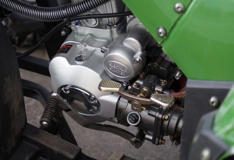 Утилитарный квадроцикл Stalker-250 HUMMER с механической коробкой передач предназначен для любителей экстремального вождения по пересеченной местности. Коробка передач 4+R позволяет снять с верхнераспредвального карбюраторного воздушного 250-ти кубового мотора максимум мощности. Торможение квадроцикла Stalker-250 HUMMER осуществляется с помощью ручного и ножного дисковых гидравлических тормозов. Передняя подвеска квадроцикла Stalker-250 HUMMER рычажная, выполнена на шаровых опорах. Запуск квадроцикла Stalker-250 HUMMER осуществляется кнопкой на руле с помощью электростартера. Так же на руле установлен рычаг пускового обогащения карбюратора.