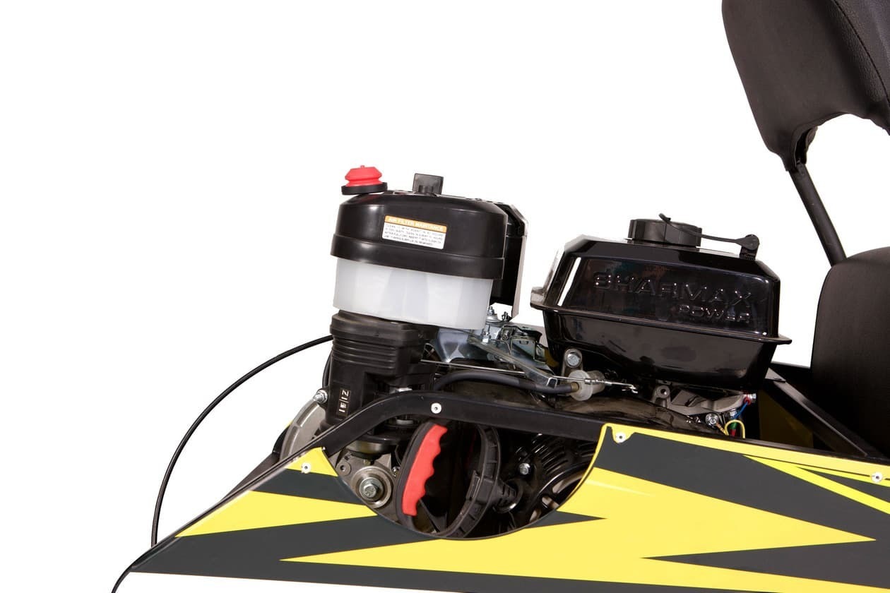 Сиденье рассчитано на двух человек. Большая система хранения, большой рундук под сиденьем, также есть большое пространство под капотом мини-снегохода (прицепное устройство поможет расширить его с помощью саней-волокуш).