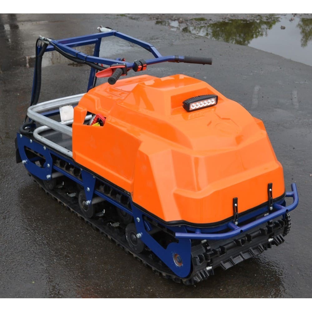 Для удобства управления, компактный блок управления вынесен на руль. Буксировщик оснащен усиленным фаркопом с подпружиненной собачкой. Для безопасной работы, буксировщик имеет чеку аварийного отключения двигателя.