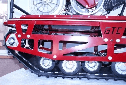Модель оснащена гусеницей шириной 500 мм. Гусеница в сочетании с катковой подвеской способна проходить спокойно по льду и даже по территории без снега.