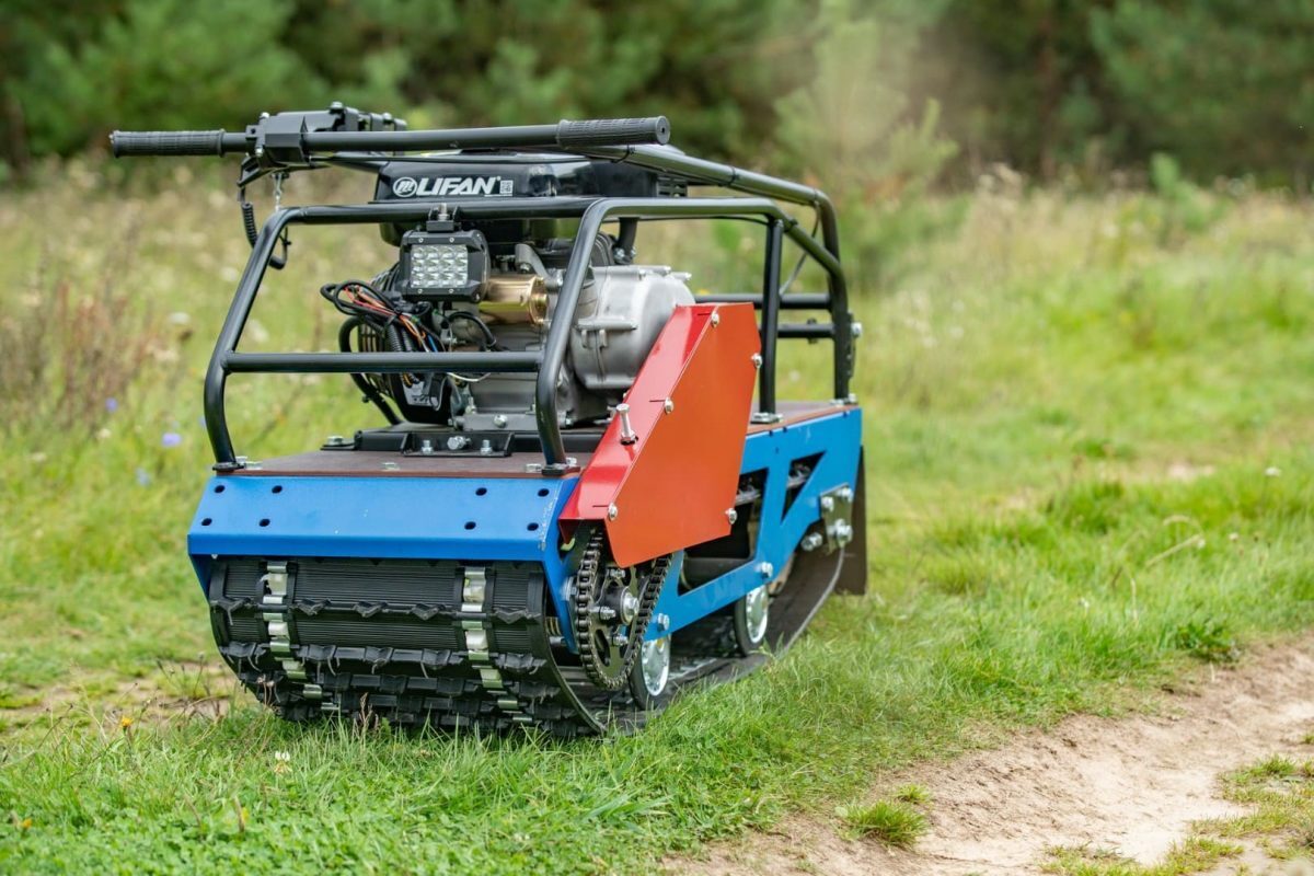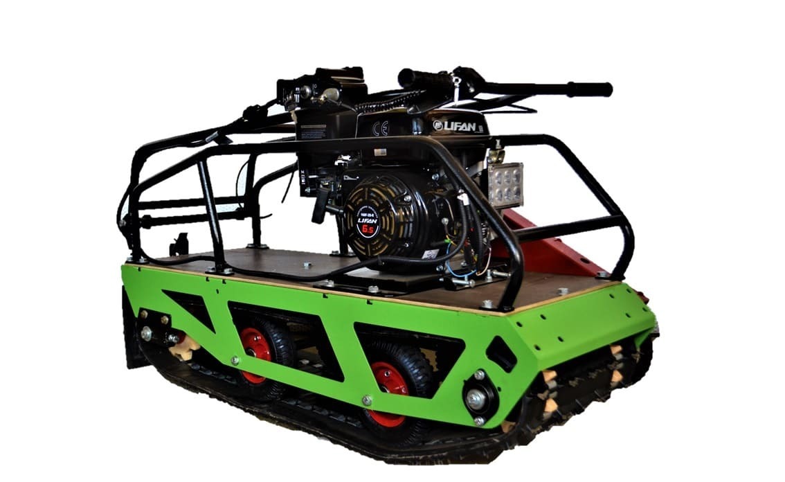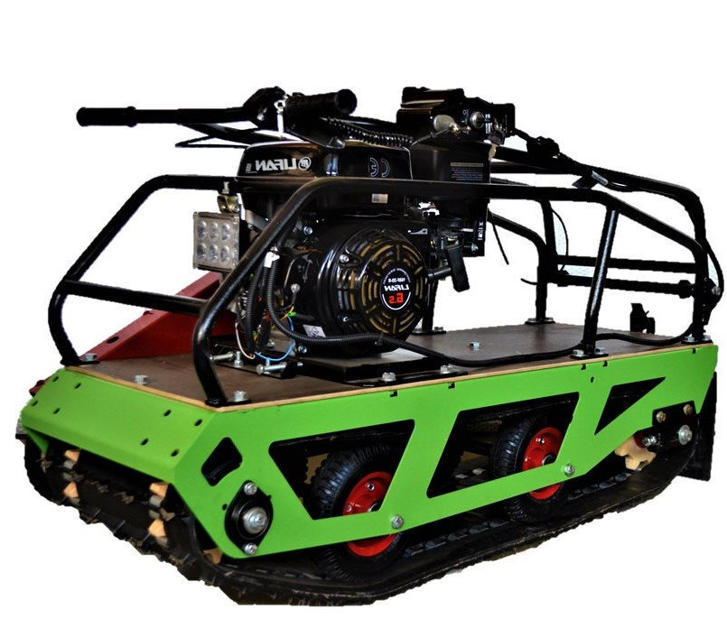 Модель оснащена гусеницей шириной 380 мм. Гусеница в сочетании с катковой подвеской способна проходить спокойно по льду и даже по территории без снега. Установлена цепь Ditton (Латвия), натягивается натяжным роликом.
