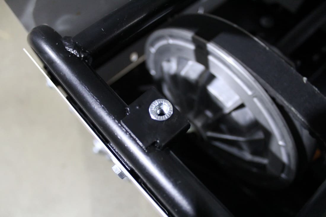 Рама максимально открытая, что улучшает выброс снега. Установлена защита нижней звезды. Двигатель и трансмиссия интегрированы на одной подмоторной плите, что позволяет точно выставлять шкивы относительно друг друга, вследствие чего устраняется перекос ремня вариатора и увеличивается его срок службы. Прочная стальная рама, каркас безопасности и металлический капот надежно защищают силовую установку мотобуксировщика.