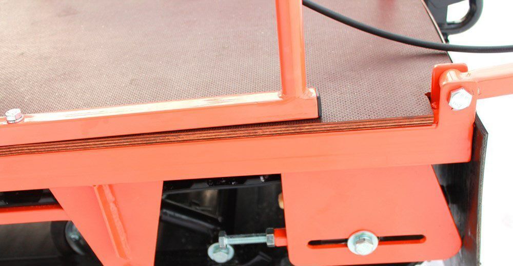 В конструкции мотовездехода используется цельная резиновая гусеница шириной 500 мм. Площадь опоры гусеницы улучшает тяговые характеристики, проходимость и устойчивость буксировщика.