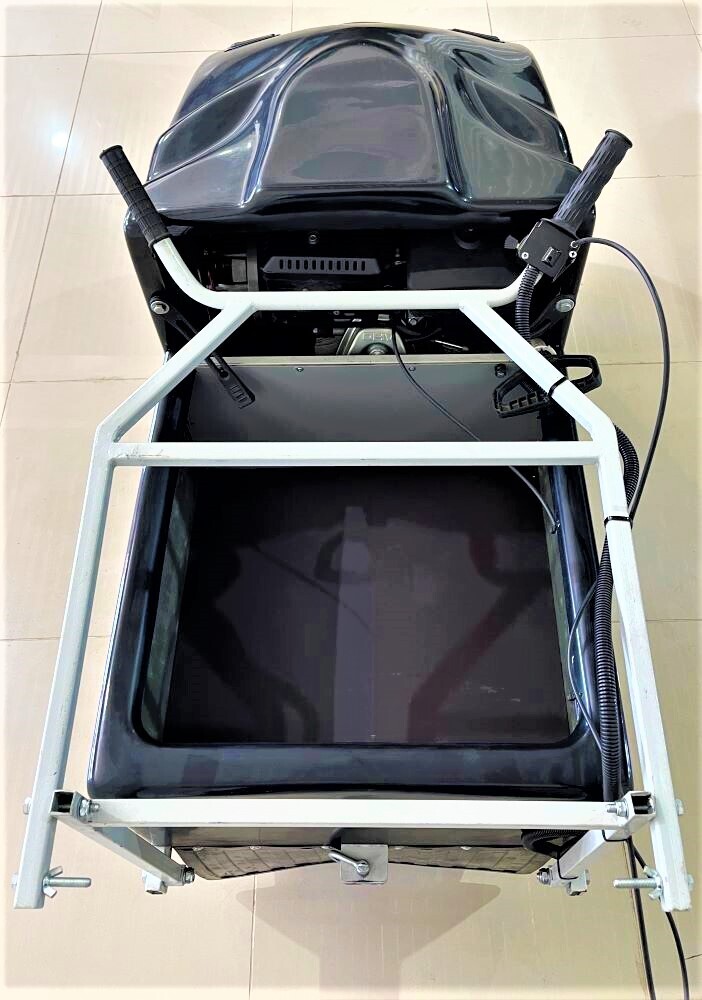 Буксировщик оснащен передним приводом, который увеличивает тяговое усилие и обеспечивает плавность хода. Усиленная рама и ходовая часть позволяют перевозить до 60 кг груза в багажном отделении. Для управления буксировщиком не требуется водительское удостоверение и регистрация в ГОСТЕХНАДЗОРЕ.