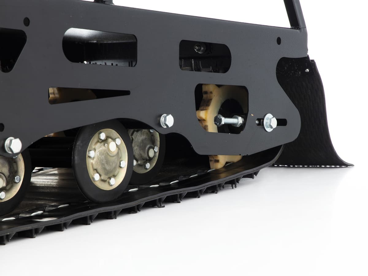 Универсальная катковая подвеска, с регулировкой угла атаки и возможностью установки склиз, позволяет эксплуатировать мотобуксировщик по любым поверхностям: снег, лед, болото, трава и т.д.