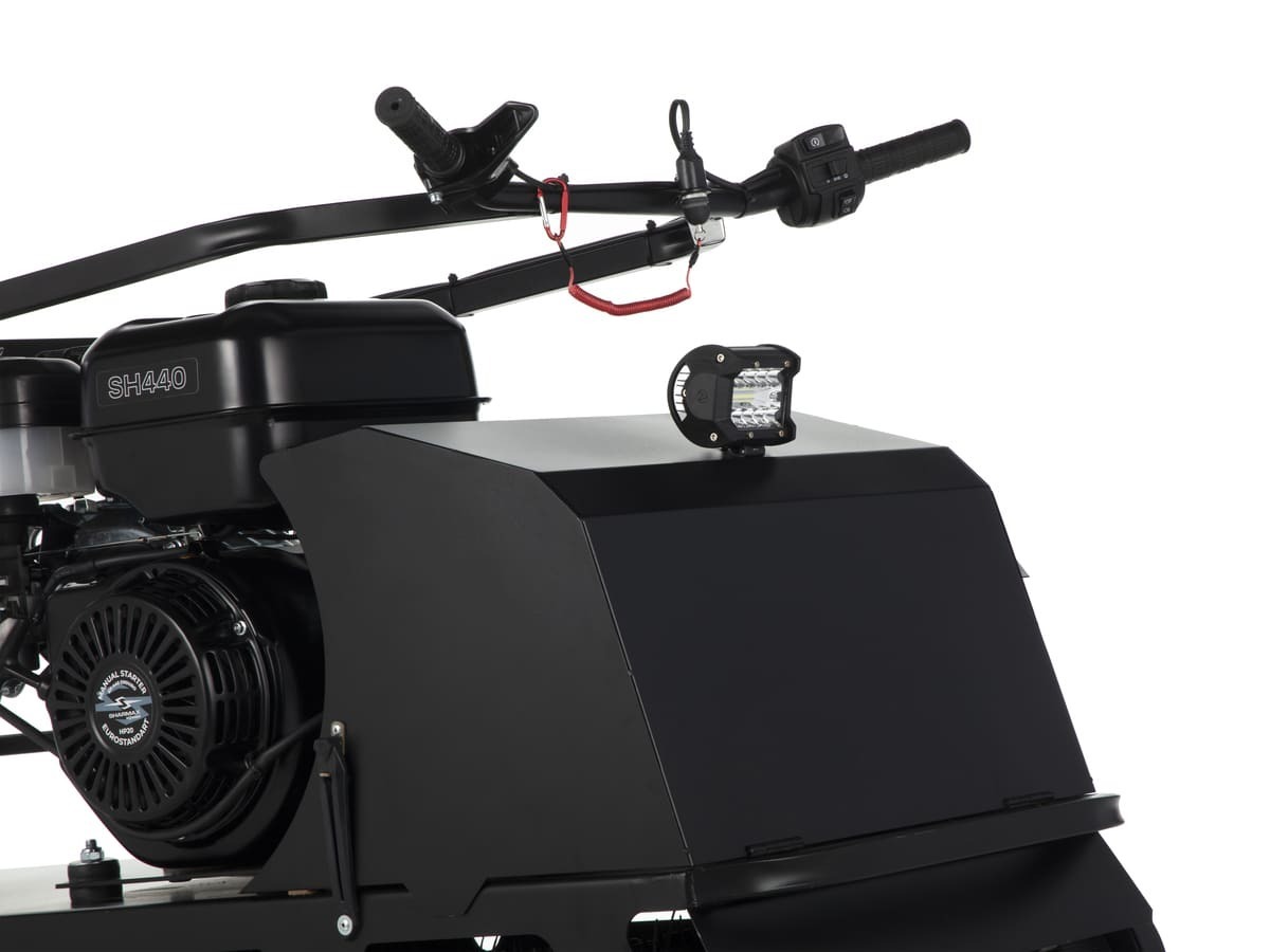 Мотобуксировщик FLAZER G500 HP20 MAXIMUM оснащен откидывающимся капотом, что позволяет быстро добраться до двигателя и трансмиссии. Яркая светодиодная фара позволяет использовать мотобуксировщик даже в темное время суток. С завода установлена аварийная чека заглушки двигателя, которая является важным элементом безопасности при движении. Мощный фаркоп позволяет буксировать груз свыше 500кг. В топливную систему добавили праймер подкачки топлива, что позволяет, без труда, запустить мотобуксировщик при температуре до -40 градусов.