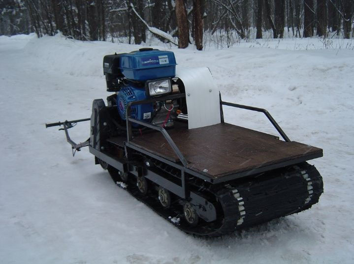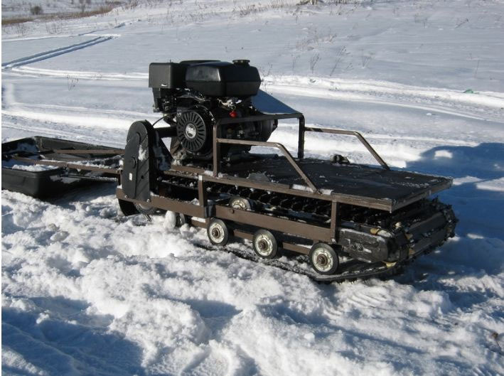Мотособака весит 95 кг, а размер ее составляет 150 см в длину, 55 см в ширину и 60 см в высоту. Благодаря своей легкости и компактности, мотобуксировщик способен маневрировать и проходить по рыхлой и мягкой почве. К тому же мотобукс оснащен катковой подвеской, которая сглаживает ход, обеспечивает устойчивость на неровной поверхности, смягчает удары и вибрации от дороги.