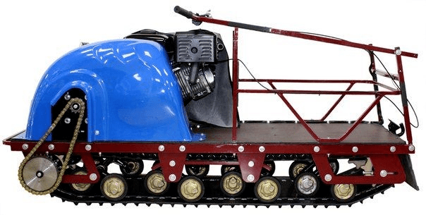 Мотособака весит 115 кг, а размер ее составляет 175 см в длину, 59 см в ширину и 78 см в высоту. Благодаря своей легкости и компактности, мотобуксировщик может маневрировать и проходить по рыхлой и мягкой почве. Кроме того, у мотобукса есть катковая подвеска, которая улучшает ход, обеспечивает устойчивость на неровной поверхности, а также смягчает удары и вибрации от дороги.