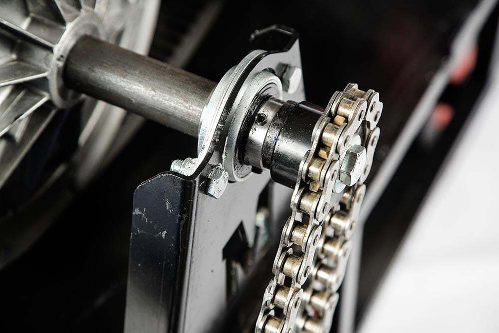 Преимущество этой модели — использование лазерной резки при изготовлении рамы и опорной плиты мотобуксировщика. Лазерная резка обеспечивает надлежащую точность заготовок. Нужная форма заготовкам придается гибочным станком. Толщина металла 4 миллиметров обеспечивает прочность конструкции при эксплуатации и гарантирует надежную эксплуатацию в течении долгих лет. Подшипники в этой модели мотособаки использованы самоцентрирующиеся в чугунном корпусе. Способ крепления подшипников снаружи.