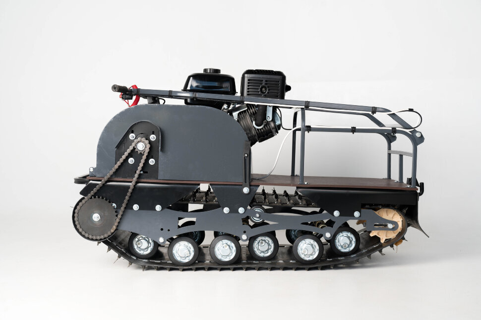 Катковая подвеска упрощена и не дает гусенице забиваться снегом. Также на данном мотобуксировщике установлены обрезиненные катки с сальниками и ведомая звезда, которая самоочищается от снега и льда. На мотобуксировщике также установлена настраиваемая рукоятка, регулируемая по высоте в зависимости от роста водителя.
