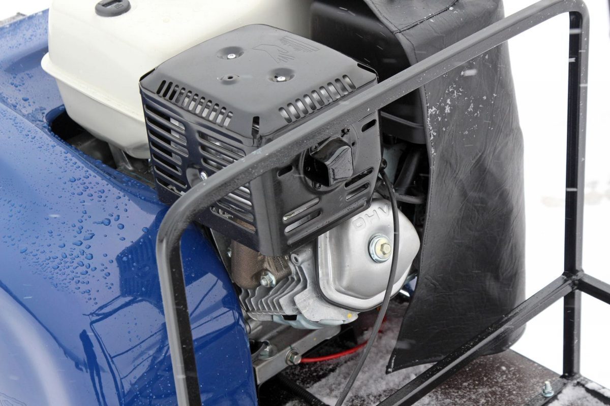 Этот мотобукс оснащен 4-х тактным двигателем мощностью 13 л. с., что позволяет достигать скорости до 45 км/ч. Это позволяет быстро перевозить груз весом до 40 кг, а также дополнительно до 200 кг в санях. Объем двигателя составляет 390 кубических сантиметров, а топливный бак имеет объем 3,6 литров.