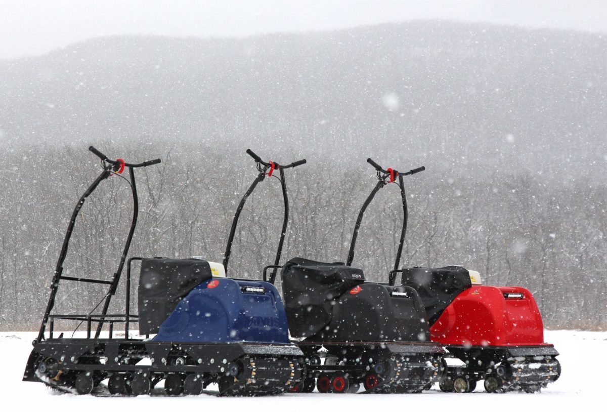 Мотособака весит 115 кг, а размер ее составляет 165 см в длину, 55 см в ширину и 70 см в высоту. Благодаря своей легкости и компактности, мотобуксировщик может маневрировать и проходить по рыхлой и мягкой почве. Кроме того, у мотобукса есть катковая подвеска, которая улучшает ход, обеспечивает устойчивость на неровной поверхности, а также смягчает удары и вибрации от дороги.