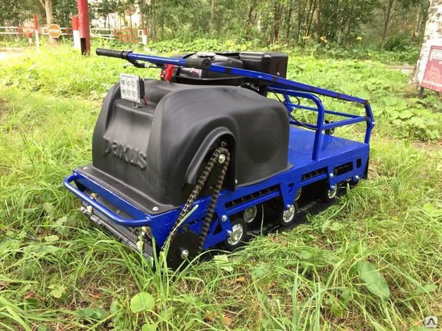 Мотособака весит 105 кг, а размер ее составляет 151 см в длину, 55 см в ширину и 76 см в высоту. Благодаря своей легкости и компактности, мотобуксировщик может маневрировать и проходить по рыхлой и мягкой почве. Кроме того, у мотобукса есть катковая подвеска, которая улучшает ход, обеспечивает устойчивость на неровной поверхности, а также смягчает удары и вибрации от дороги.
