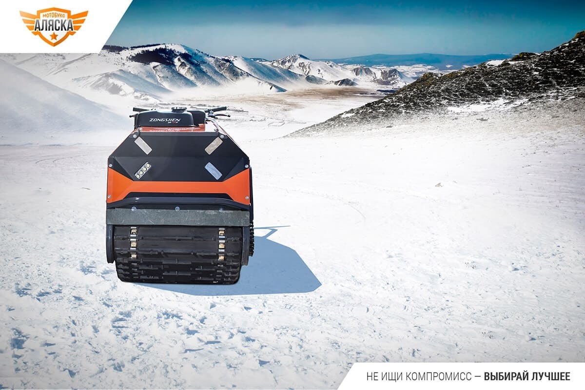 Мотособака имеет усиленную рамную конструкцию из гнутого профиля и стальной окрашенный кузов, нанесенный на заводе. Производитель также предусмотрел защиту приводной цепи и деталей подвески, дисковый тормоз с функцией парковки, магнето-генератор для электрооборудования и зарядки мобильных устройств. Благодаря хорошей тяге, мягкой подвеске, а также оптимальной компоновке узлов и угла атаки гусеницы, мотобукс обеспечивает комфортное движение по бездорожью.