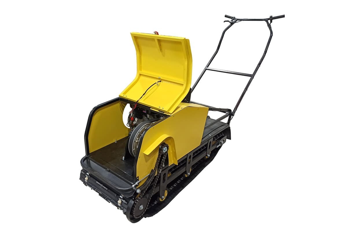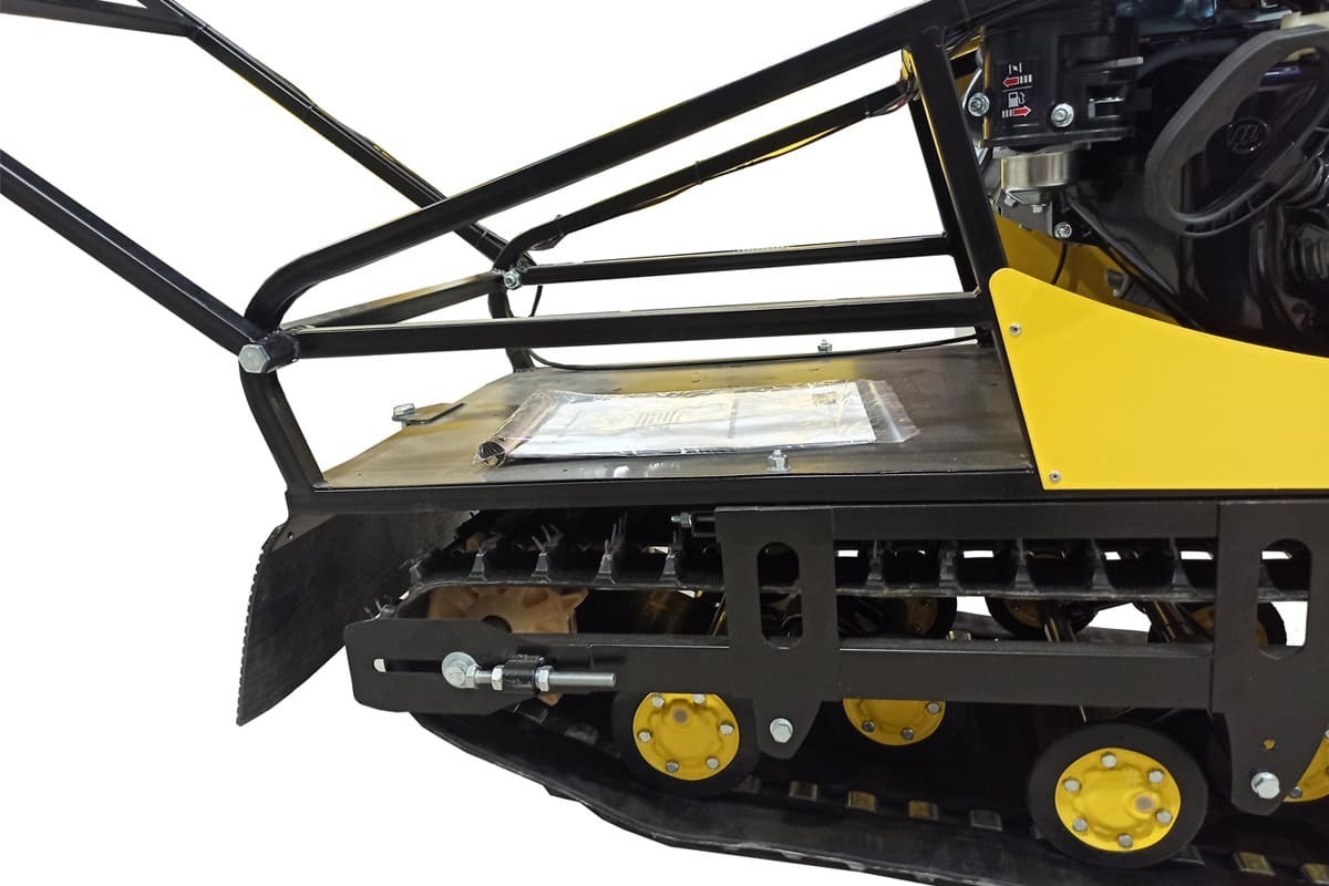 Мотобукс обладает весом 98 кг, а также в длину составляет 143 см, 68 см в ширину и 81 см в высоту. Максимальная скорость достигает 30 км/ч, а грузоподъемность составляет до 300 кг, что делает его идеальным для перевозки снаряжения. Также предусмотрены удобные ручки для управления и система амортизации, обеспечивающая комфортную езду по различным типам местности.