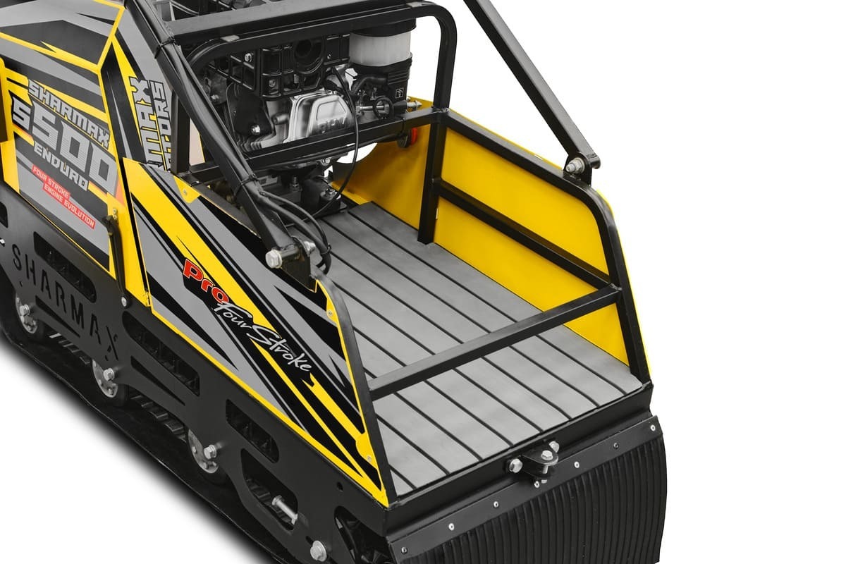 Уникальная конструкция рёбер жёсткости и формы кузова позволила избежать избыточного веса мотобуксировщика, и даже на 7% уменьшить вес среди аналогичных классов моделей других брендов. Теперь сухая масса Sharmax S500 1450 HP18 Enduro составляет всего 90 кг.