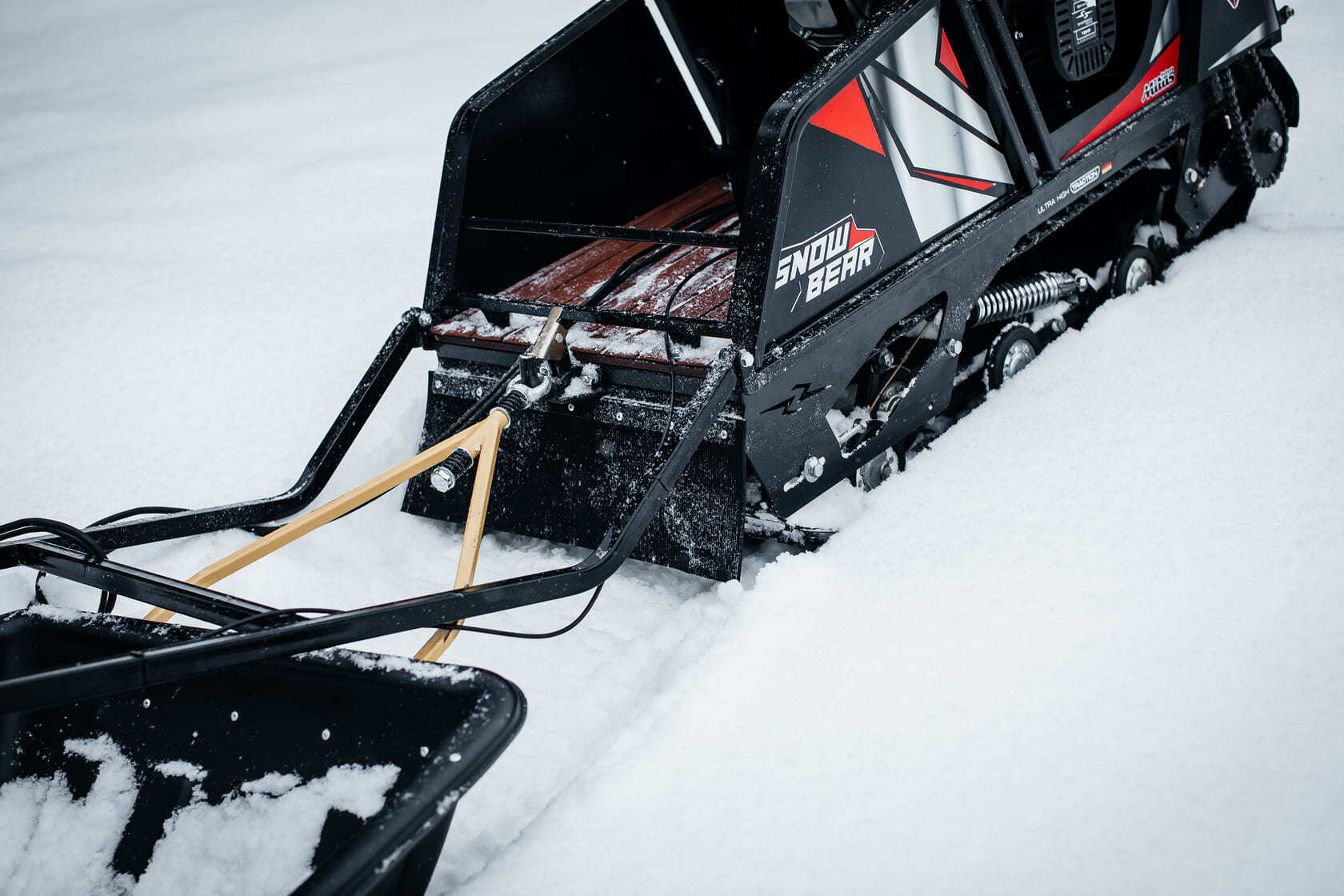 Уникальная конструкция рёбер жёсткости и формы кузова позволила избежать избыточного веса мотобуксировщика, и даже на 7% уменьшить вес среди аналогичных классов моделей других брендов. Теперь сухая массе Sharmax S500 1450 HP18 Ultra составляет всего 90 кг.