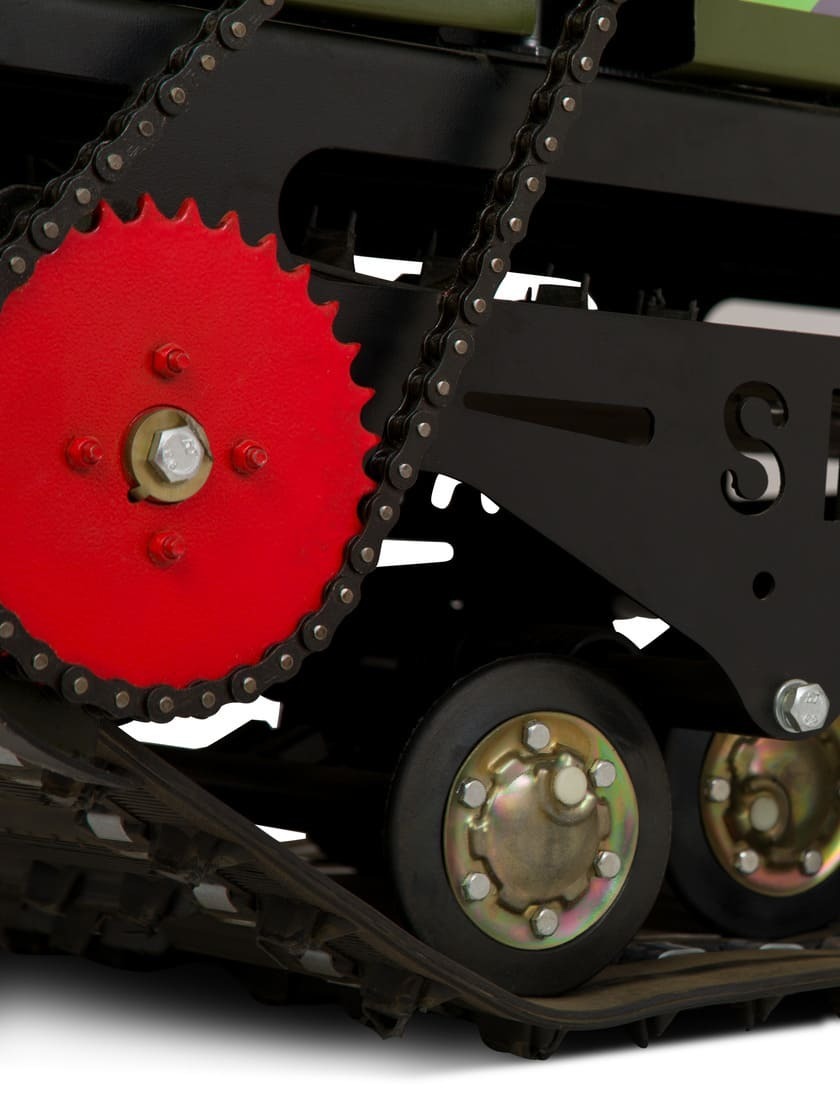 Конструкция мотобуксировщика Sharmax S500 HP23 устроена таким образом, что позволяет без особого труда устанавливать к ней и использовать любые шасси, предназначенные для различных условий эксплуатации. Универсальные посадочные отверстия основы и кузова мотобуксировщика Sharmax HP23 могут использоваться на склизовой, катковой и даже колёсной подвеске.