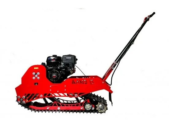 В конструкции мотовездехода используется цельная резиновая гусеница шириной 500 мм. Гусеница в сочетании с катковой подвеской способна проходить спокойно по льду и даже по территории без снега.