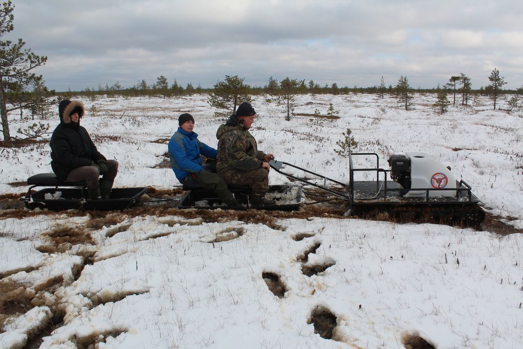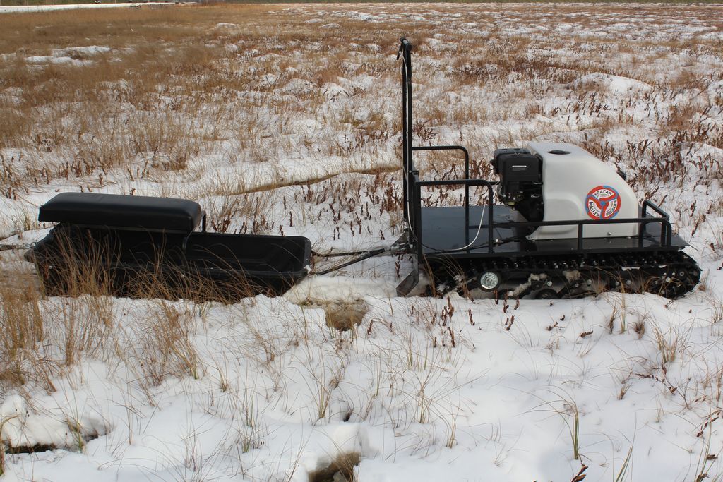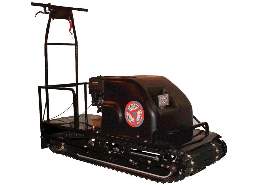 У буксировщика имеется компактная задняя площадка для перевозки личных вещей, инструментов, рыбацких снастей и прочих необходимых мелочей охотнику или рыбаку. Техника оснащена яркой фарой, которая позволяет пользоваться транспортом даже в темное время суток. Морозо- и вибростойкий капот с чехлом карбюратора и пластинами утепления - максимально защищает ДВС от обледенения и от возможности лопнуть.