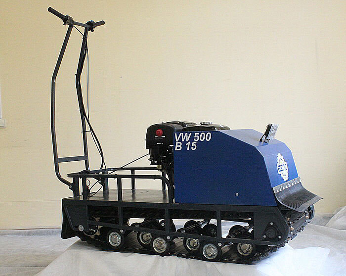 Модель оснащена гусеницей шириной 500 мм. Гусеница в сочетании с катковой подвеской способна проходить спокойно по льду и даже по территории без снега.