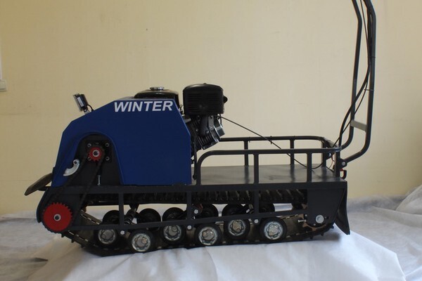 Модель оснащена гусеницей шириной 500 мм. Гусеница в сочетании с катковой подвеской способна проходить спокойно по льду и даже по территории без снега.
