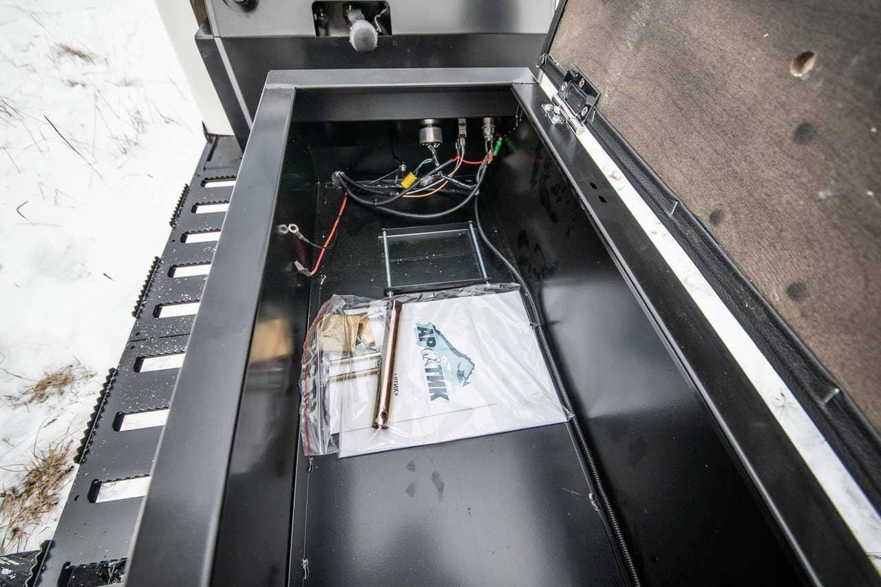 Комфортное сиденье со спинкой и вместительный багажный отсек под сиденьем водителя, а также солидное грузовое отделение делают этот снегоход удобным для длительных поездок.