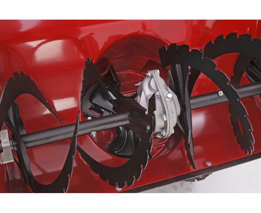 - Шнек. Снегоуборочная машина оснащена специальным стальным агрессивным шнеком, который позволяет справиться даже с давно залежавшимся снегом.