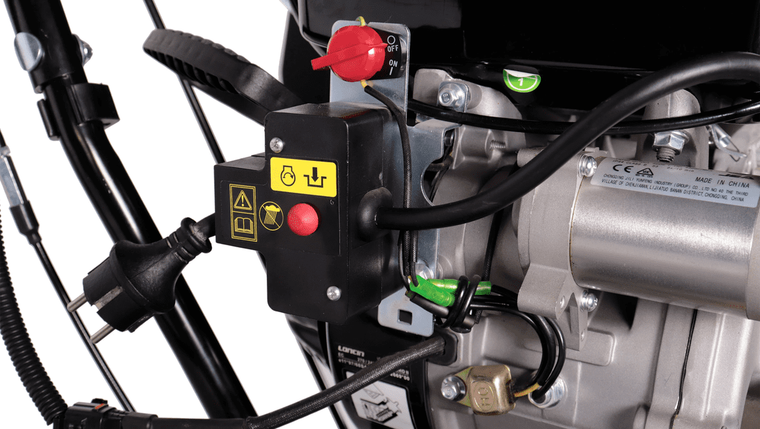 Ручной стартер. Используется для запуска двигателя и находится в удобном и доступном месте на задней части снегоуборщика в виде рычага.