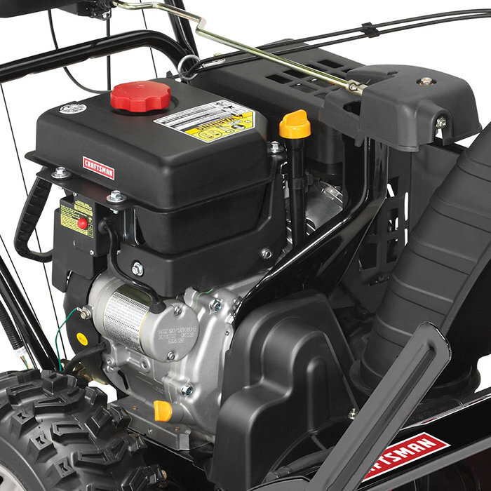 Снегоуборщик CRAFTSMAN 88396 - это незаменимый помощник при очистке больших площадей от снежного покрова. Мощный четырехтактный двигатель в паре с большими шипованными колесами, обеспечивает высокую проходимость аппарата даже при наличии склонов и возвышенностей на рабочей поверхности. Аппарат оборудован четырехтактным двигателем производства Craftsman с рабочей мощностью 13 л.с. Предусмотрены системы ручного старта и электрозапуска нажатием кнопки.