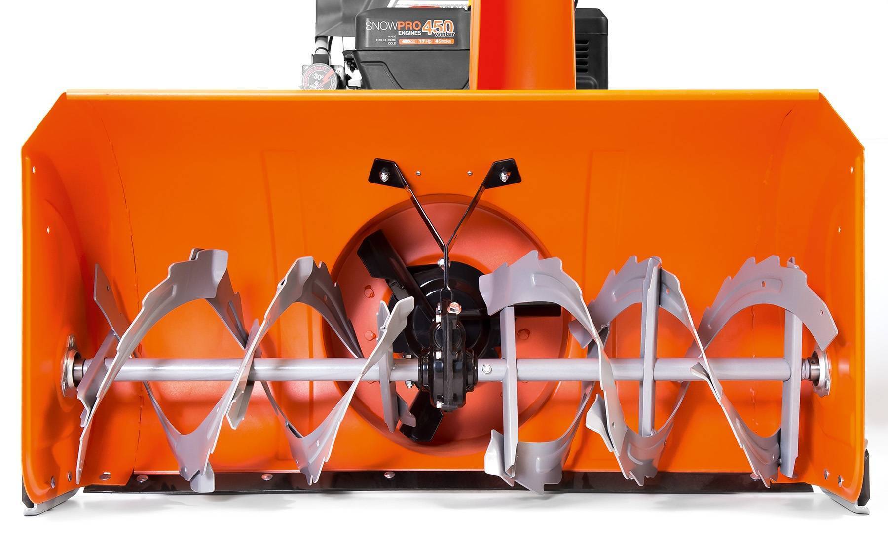 - Стальной шнек. Снегоуборочная машина оснащена специальным шнеком с зубчиками, который позволяет справиться даже с залежавшимся снегом на большой и маленькой территории. Обладает многоступенчатой системой очистки.