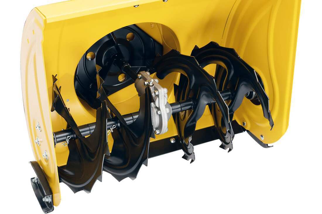 - Металлический шнек. Снегоуборочная машина оснащена специальным шнеком с зубчиками, который позволяет справиться даже с залежавшимся снегом на большой и маленькой территории. Обладает многоступенчатой системой очистки.