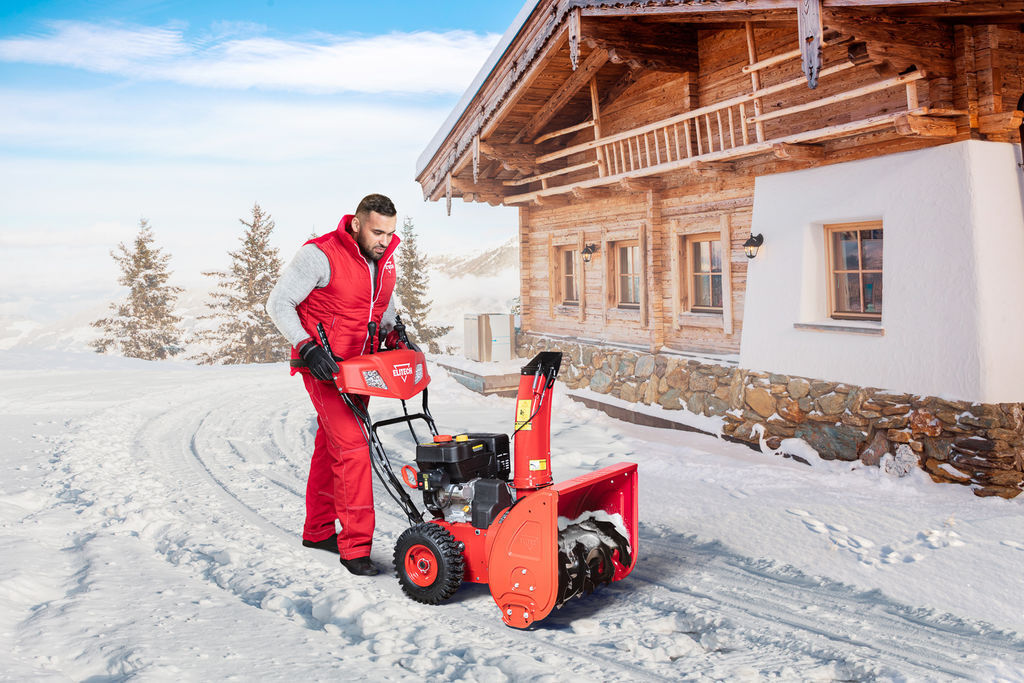 - Электростартер. Напряжение 220В оснащает снегоуборщик быстрым запуском в любую погоду.