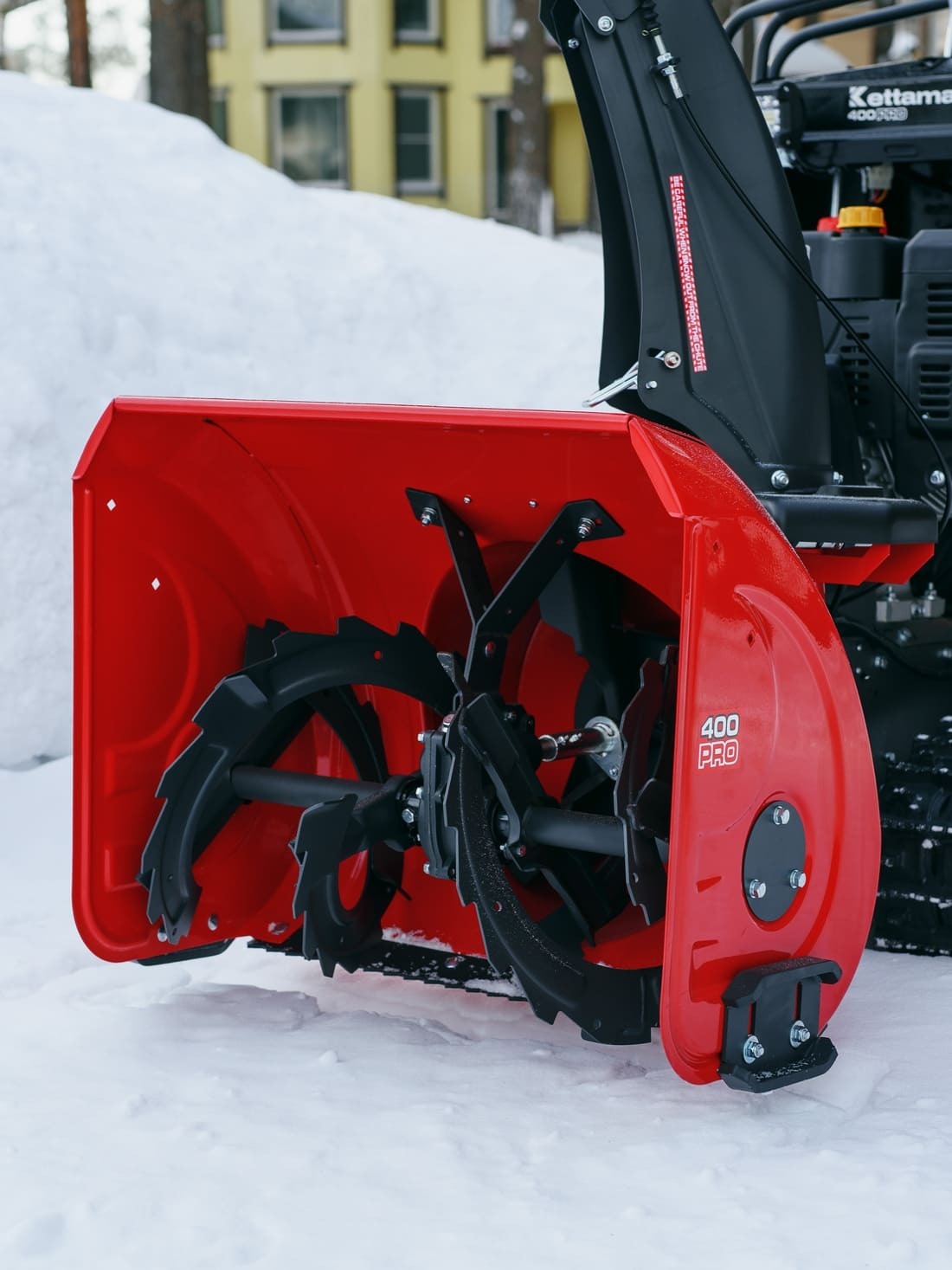 Профессиональная гусеничная снегоуборочная машина Kettama 400 Pro Hydrostatic оснащена гидростатической трансмиссией и вариаторной коробкой передач Multitronic с повышенным крутящим моментом до 300 Нм. При этом агрегат обладает компактными размерами и самой высокой среди аналогов производительностью до 32 т/ч при работе со снегом до 250 кг/м3 (за 30 минут можно очистить территорию в 40 парковочных мест).