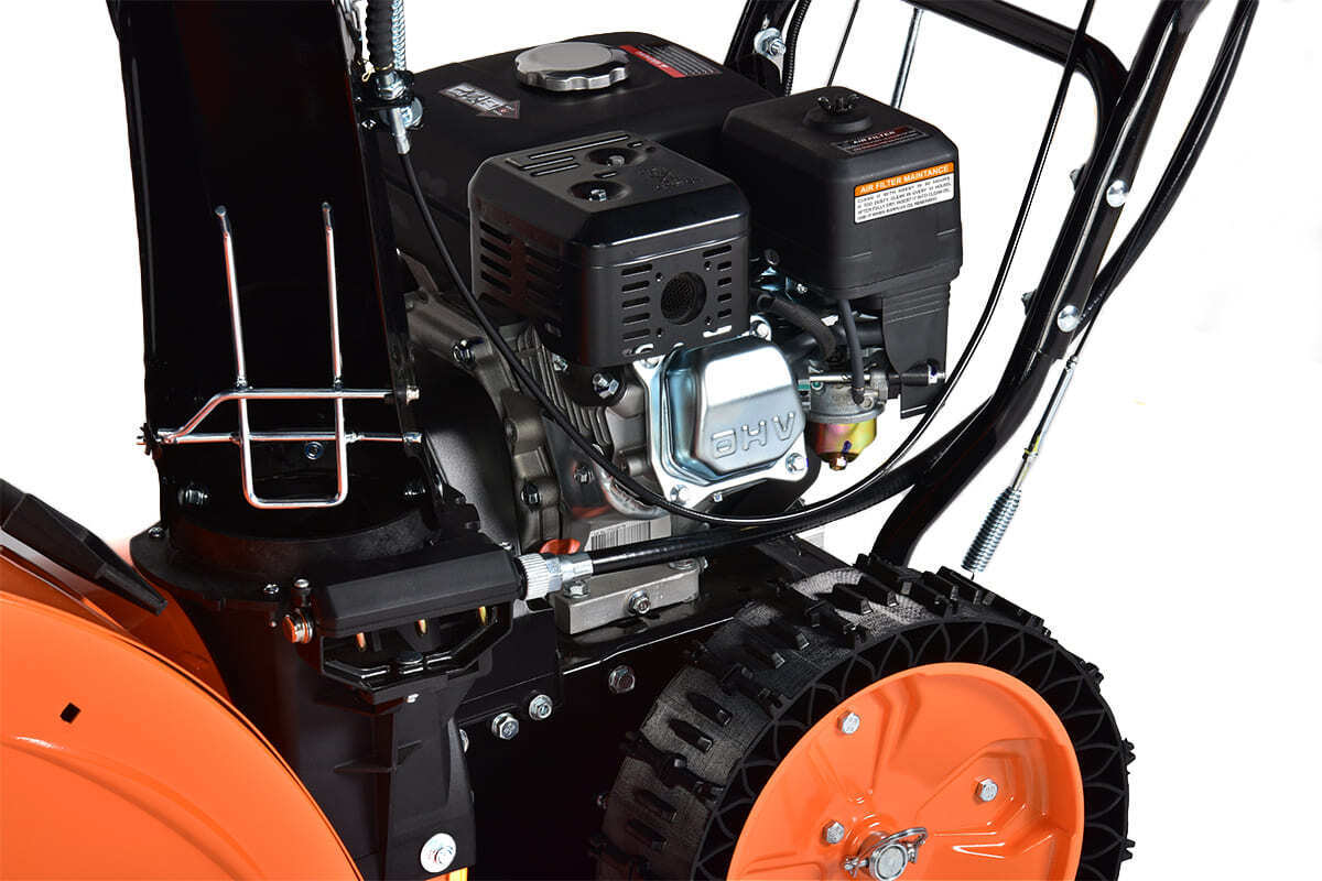 Возможность эффективно перерабатывать снег разных типов сложности связана с конструкторским решением сочетания высокой мощности (8,5 л. с.), небольшой ширины уборки (660 мм) и усиленным сцеплением 14-дюймовых безвоздушных шин Runflat. Небольшая ширина ковша даёт возможность эксплуатировать технику на любом приусадебном участке с узкими дорожками. Повышенная высота ковша даёт возможность применения этой техники при работе с более высоким снегом. Однако это же создаёт определённые ограничения в работе с лежалым снегом с элементами сухого фирна. Дефлектор из усиленного металла позволяет менять направление выброса снега на 190 градусов при помощи рукоятки на корпусе машины. Стальной шнек с добавлением хромомолибденового сплава позволяет эффективно справляться даже со слежавшимся снегом.