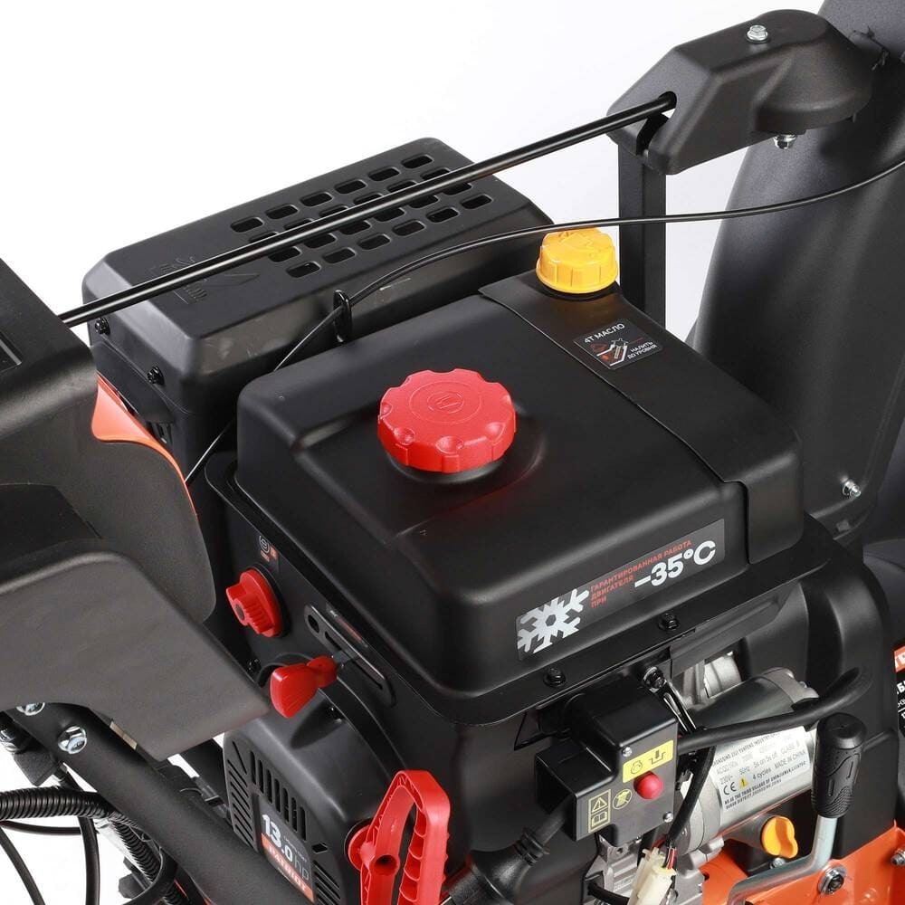 Снегоуборщик Патриот Сибирь оснащен бензиновым двигателем мощностью 13 л.с. и объемом 375 кубов, защищенным от морозов до -35 градусов. Благодаря электростартеру, его можно запустить по нажатию одной кнопки в любую погоду, что обеспечивает удобство и надежность в эксплуатации.