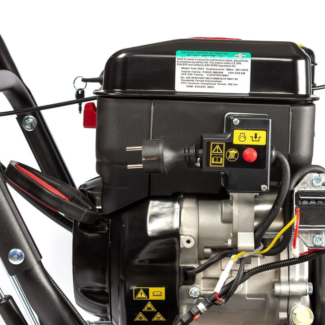 - ● запуск: снегоуборщик оснащен ручным стартером и электростартером;